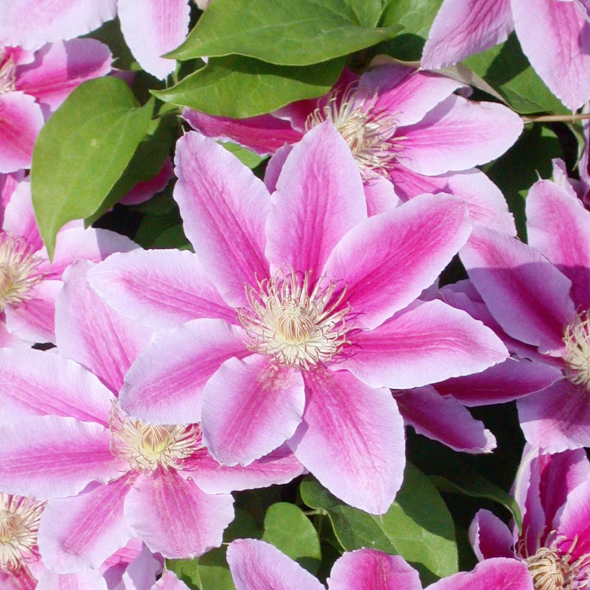 Clematis ‘Nelly Moser’ is a classic and elegant climbing plant variety admired for its large, star-shaped blooms in soft pink with striking rose-colored stripes. Known for its vigorous growth and repeat blooming ability, this clematis variety adds vertical beauty to fences, trellises, pergolas, and garden walls. It performs best in well-drained soil with its roots shaded and vines in full sun. With proper care, Nelly Moser rewards gardeners with abundant blooms from late spring through early fall, making it a favorite for ornamental landscapes.