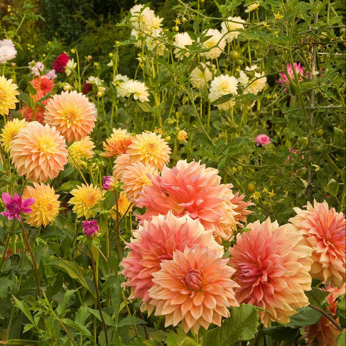Dahlias thrive in sunny conditions and well-drained soil. They are easy to grow and offer long-lasting beauty from midsummer until the first frost, making them a favorite among home gardeners and floral enthusiasts.