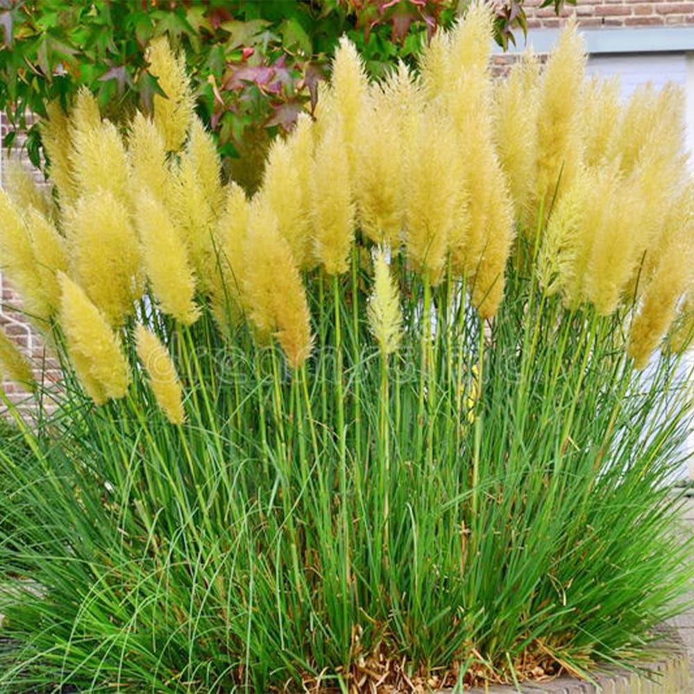 Pampas Grass is an elegant ornamental plant valued for its tall, feathery plumes and decorative appeal. The Yellow variety produces soft golden-yellow plumes that add a graceful touch to landscapes, gardens, and dried floral arrangements. It is easy to grow, drought-tolerant, and ideal for borders or as a centerpiece in large garden spaces.