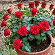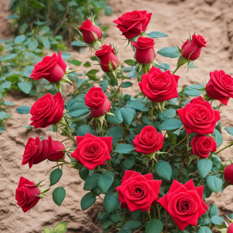 Produces vibrant red rose blooms