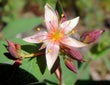 Produces delicate pink flowers with contrasting yellow centers